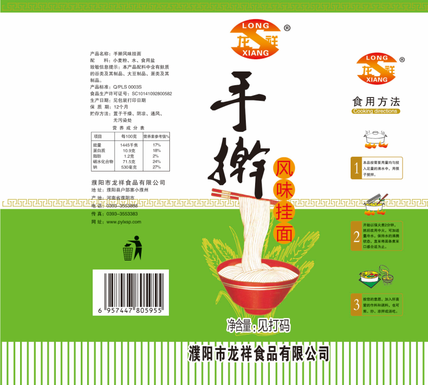濮陽市龍祥食品有限公司位于河南省濮陽縣戶部寨鎮小濮州,始建于1994年,前期投資200萬元,經過幾年的努力,大力開發市場,由于市場的需求量急劇上升,出現供不應求,于2004年擴建,建成一座新型的現代化面粉加工企業,并擁有全國先進全自動生產設備一套,產量由以前的100噸/天,提高到現在400噸/天。 2012年再次擴大規模申請為濮陽市龍祥食品有限公司,注冊資金500萬元。2012年又投資800萬元新建掛面生產線一條,日產掛面50噸。龍祥食品有限公司現有職工120余人,總工程師1人,專業技術人員10人,經濟師1人,會計師1人,銷售人員2人,優秀專業人員20余人?! ↓埾楣咀詣摻ㄒ詠恚鐣б媸挚捎^。公司一直以“今天的質量,明天的市場”為信念,“一切為了客戶需求,竭誠追求完美品質”為企業宗旨,走專業化經營和職業化管理的路子。
